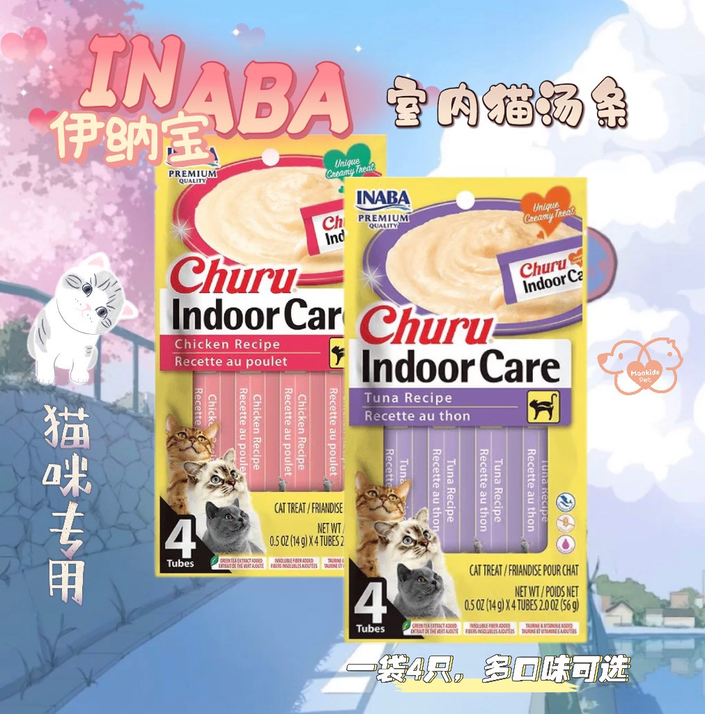 伊纳宝Inaba 室内猫咪汤条啾噜酱 两口味可选 一袋4根入