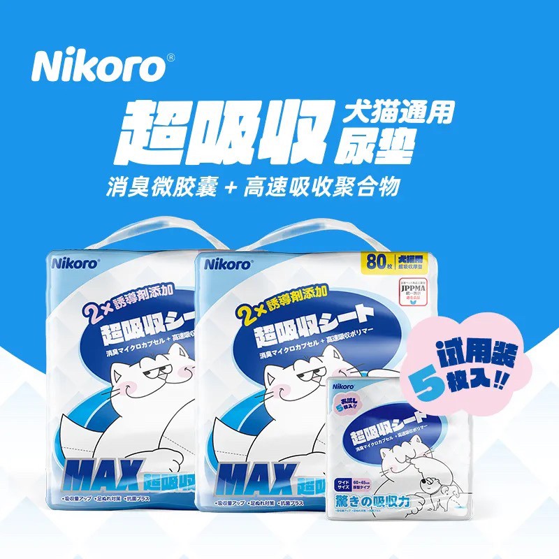 妮可露Nikoro 宠物诱导尿垫 狗狗尿垫7层 添加如厕诱导因子 除臭尿垫 两个Size可选