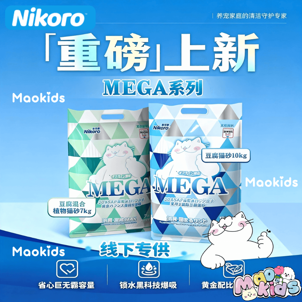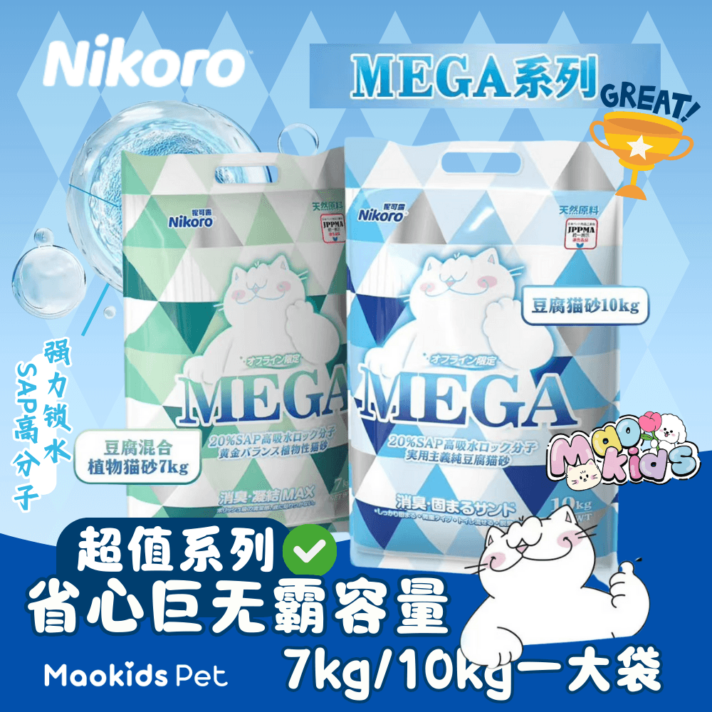 妮可露Nikoro Mega系列 巨划算超大袋猫砂 豆腐/豆腐木薯两款可选 一袋10kg/7kg装