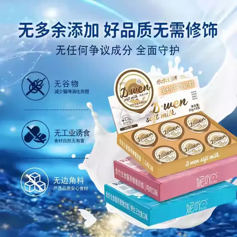 妮吖 猫咪墩墩奶糕 拉丝厚肉 三口味可选 一盒55g*6杯入