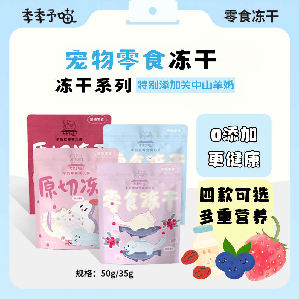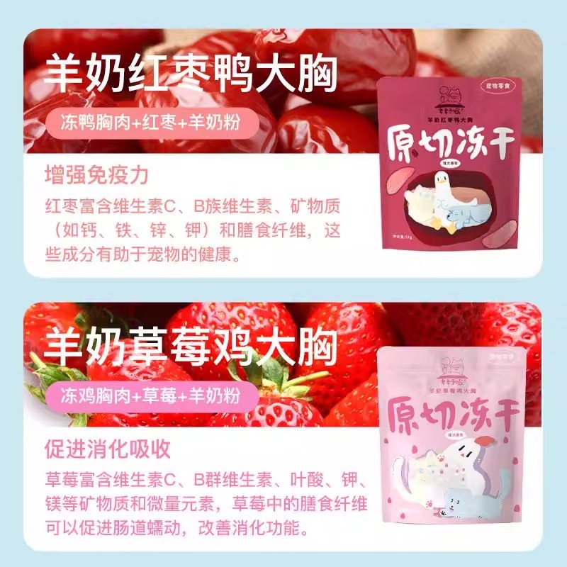 季季予喵 猫咪冻干零食 冻干草莓鸡胸/鸭胸/奶豆羊奶粉 高蛋白营养补充 四款可选