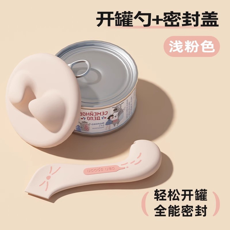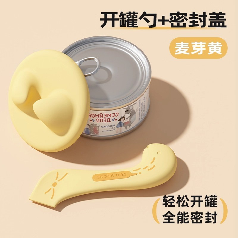 宠叮当 宠物硅胶罐头勺子+盖 开罐头神器 猫罐头密封盖 保鲜盖套装 三色可选