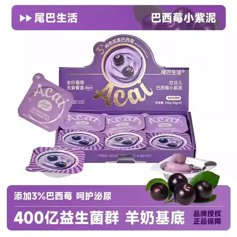 Furrytail尾巴生活 小紫泥巴西蓝莓兔肉主食餐盒 猫咪专用 一盒35g*6枚入