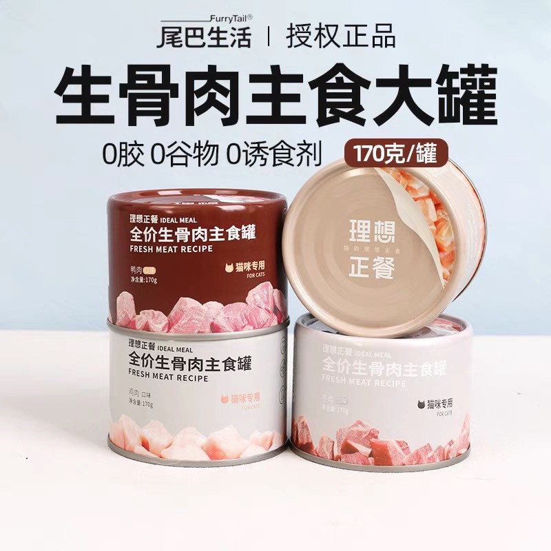 Furrytail尾巴生活 猫咪生骨肉主食罐头 营养理想正餐4罐混合装 170g一罐✖️4