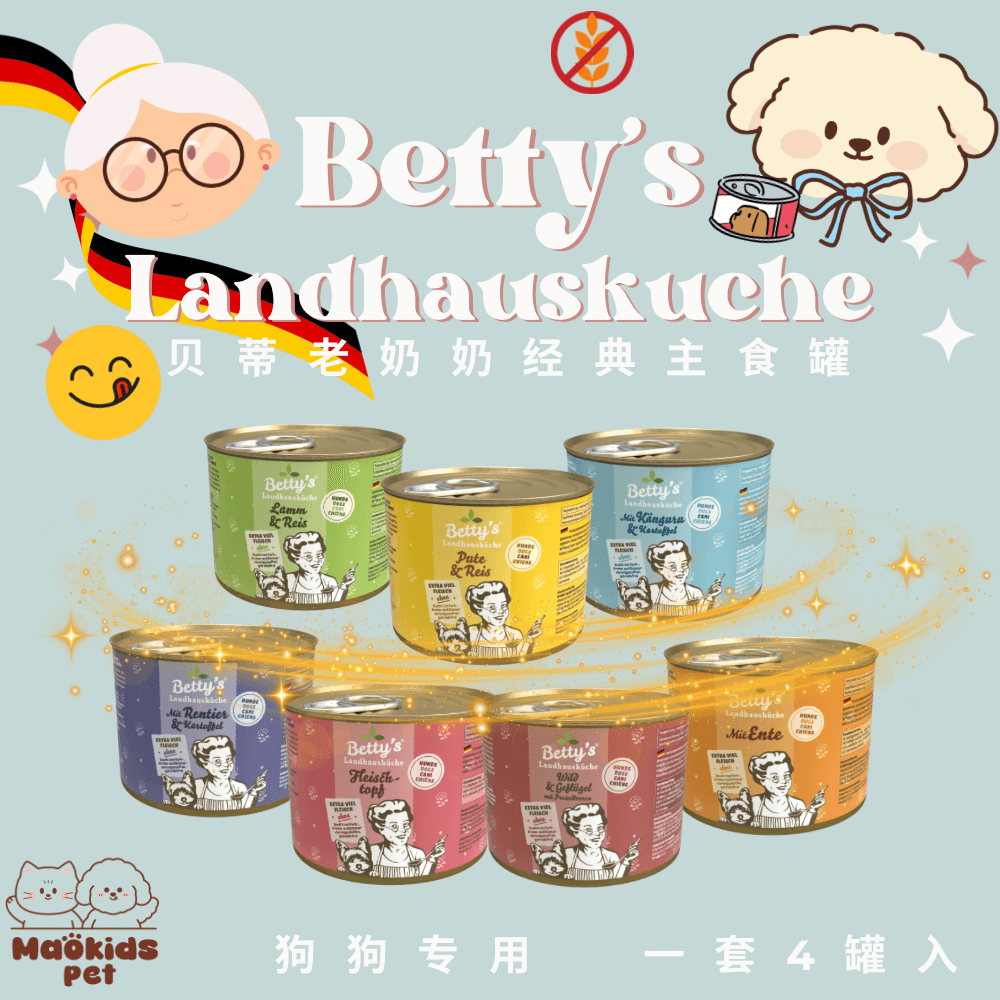 德国Betty's贝蒂老奶奶 狗狗主食罐头 高肉含量 多口味可选 一套4罐*200g