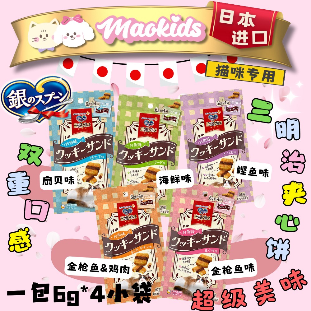 日本银勺 猫咪专用 三明治夹心饼干 双重口感 五口味可选 一包4袋*6g入