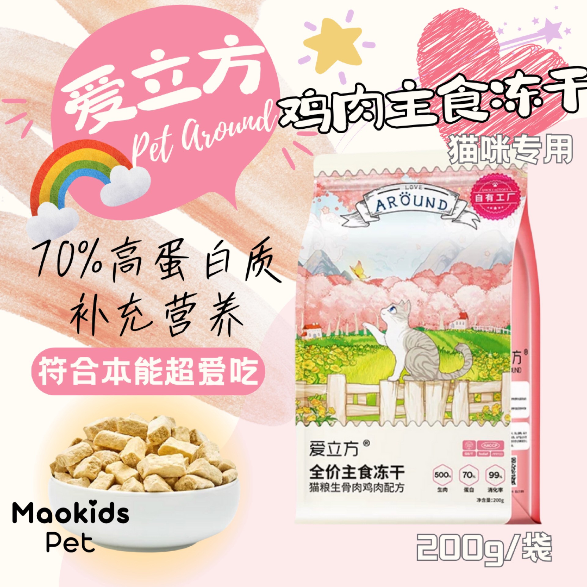 爱立方 主食鸡肉冻干 高蛋白高适口性 增肥发腮 一袋200g
