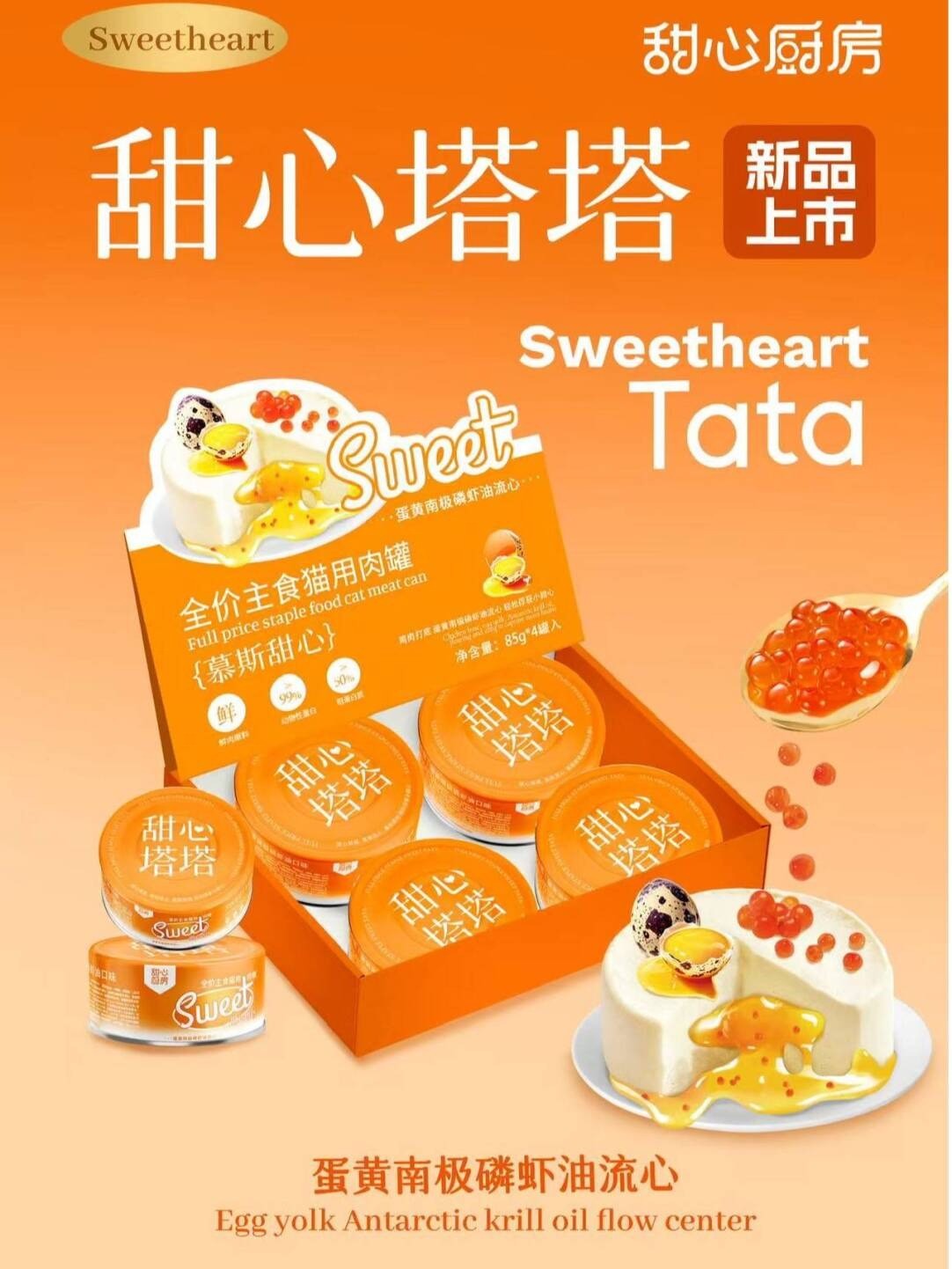 甜心厨房 塔塔爆浆流心猫罐头 全阶段猫咪主食罐头 流心罐营养湿粮 多口味可选 一盒85g*4罐