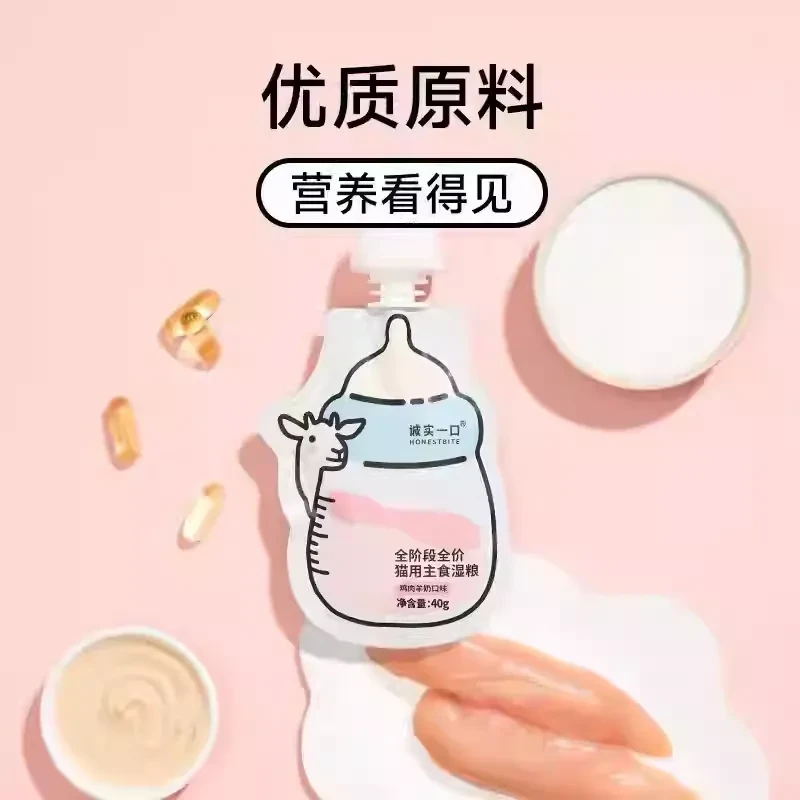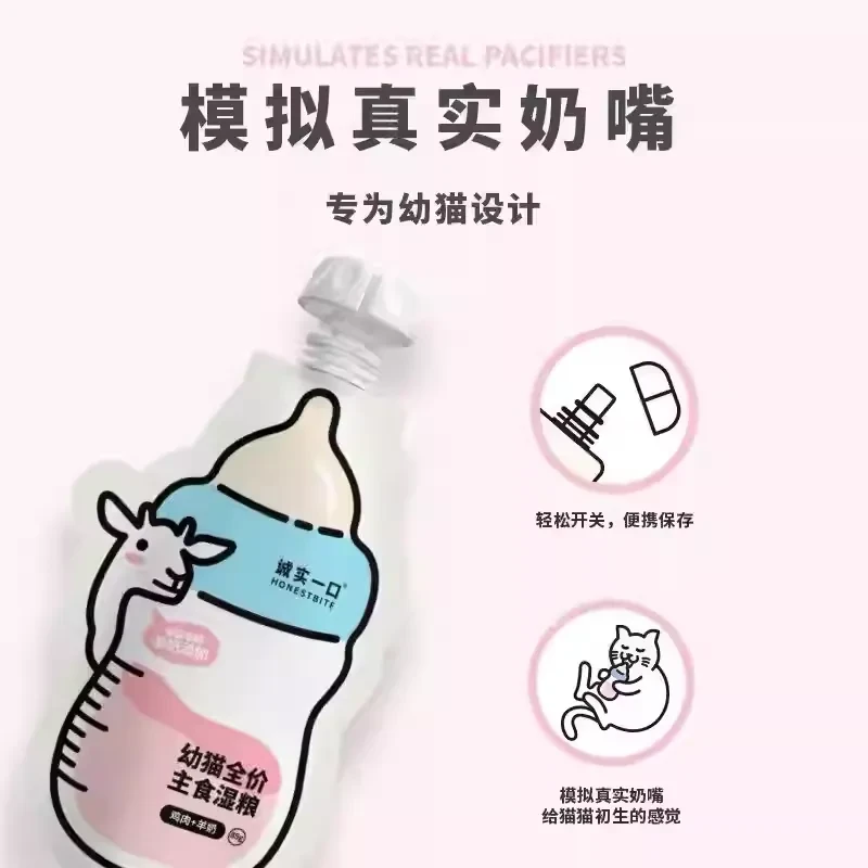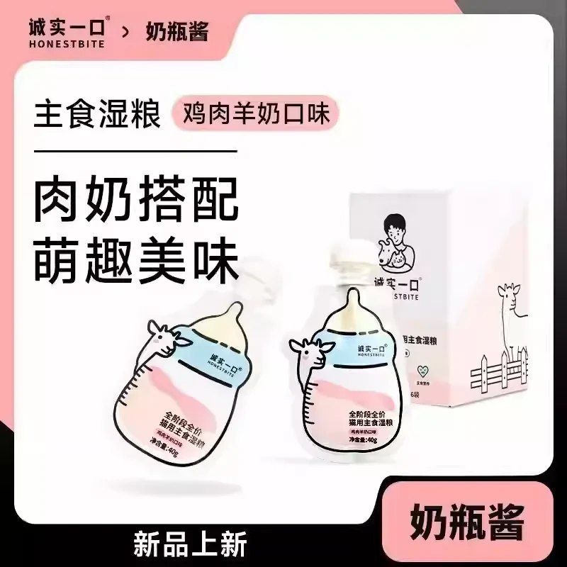 诚实一口 奶瓶酱主食猫咪湿粮 幼猫必备 鸡肉羊奶配方 营养补水增肥软罐头餐包酱包 一盒6包*40g