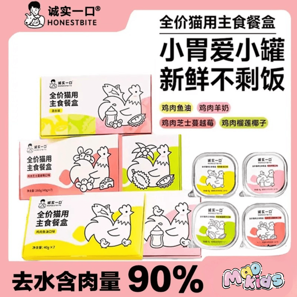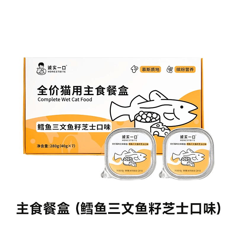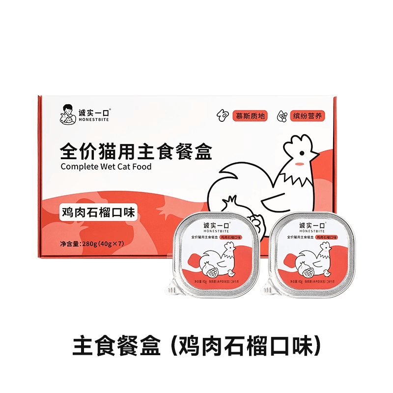 诚实一口 猫主食餐盒 全价猫罐头 小鸟胃餐盒鲜肉湿粮补充营养罐头 三口味可选 鸡肉石榴/兔肉蓝莓/鳕鱼三文鱼籽芝士 一盒含40g*7枚入