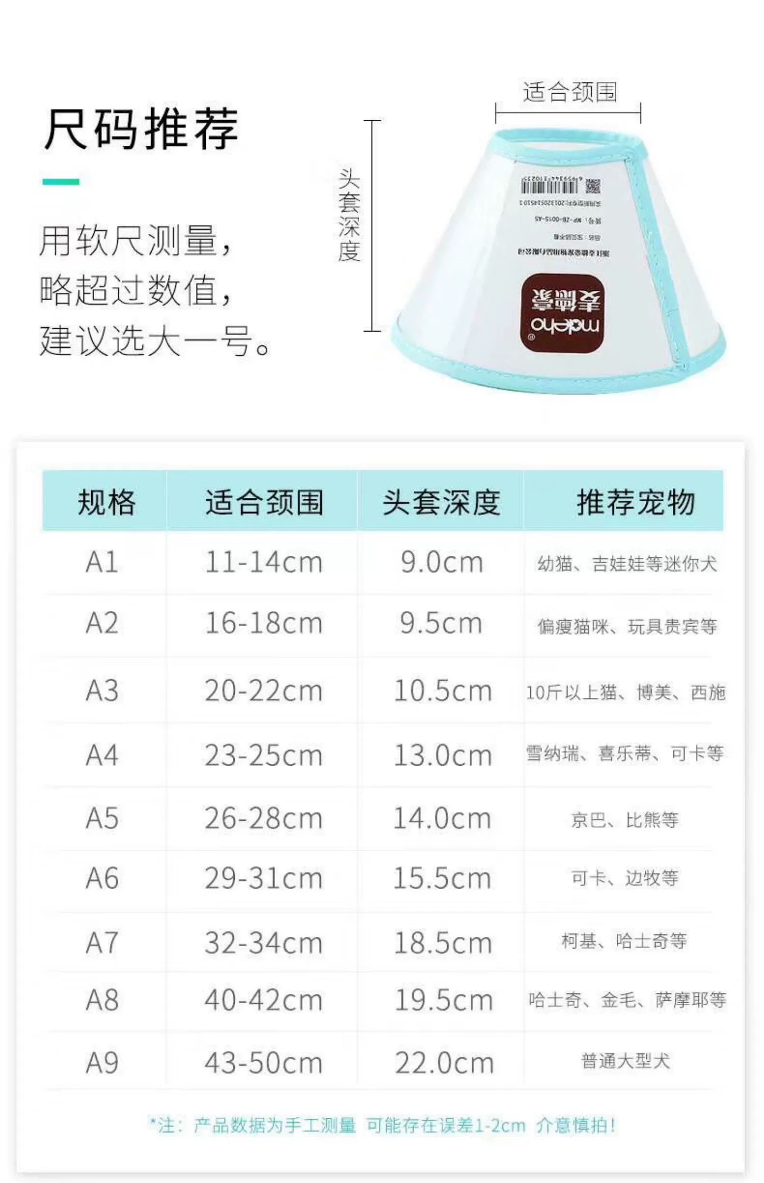 麦德豪 犬猫伊丽莎白圈 术后恢复防舔伤围脖 防咬项圈 多尺寸可选