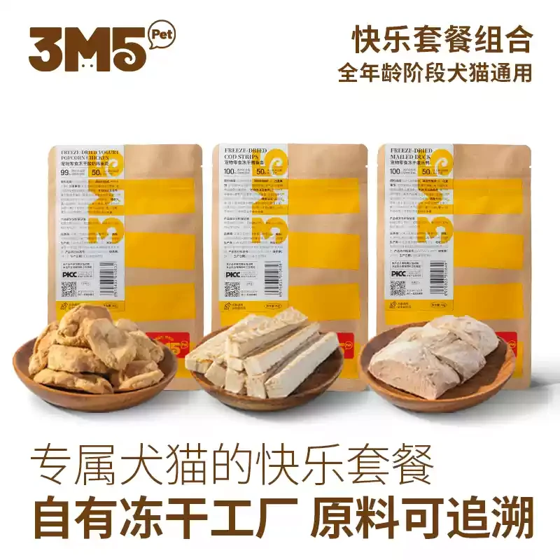 3m5 麦门鲜嫩冻干套餐 犬猫通用 三款可选 鸭肉/鸡米花/鳕鱼柳 一袋40g