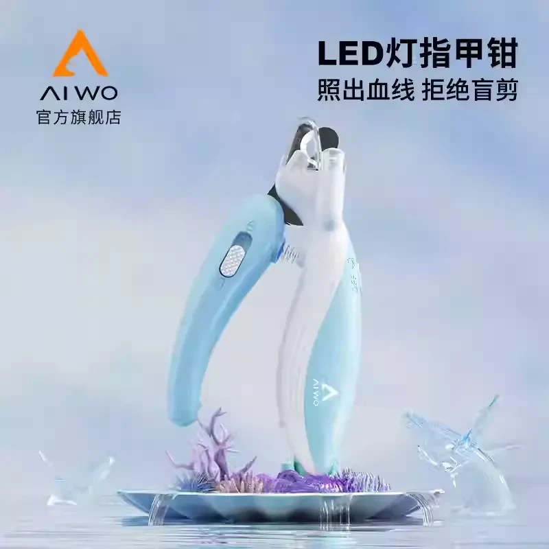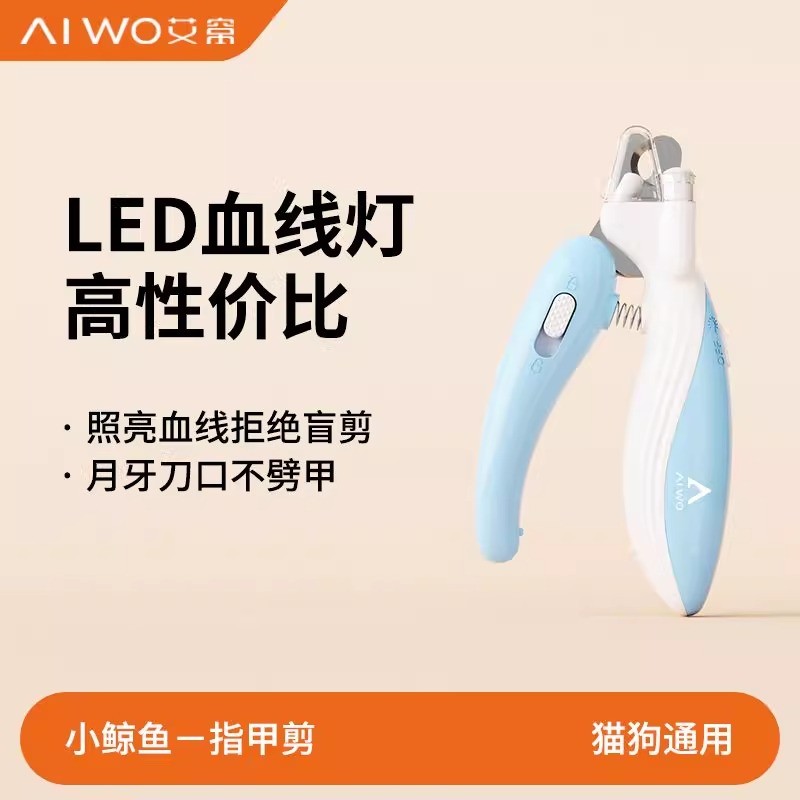 Aiwo 艾窝小鲸鱼宠物指甲剪 LED血线灯 犬猫通用指甲钳 带灯指甲刀 多色可选