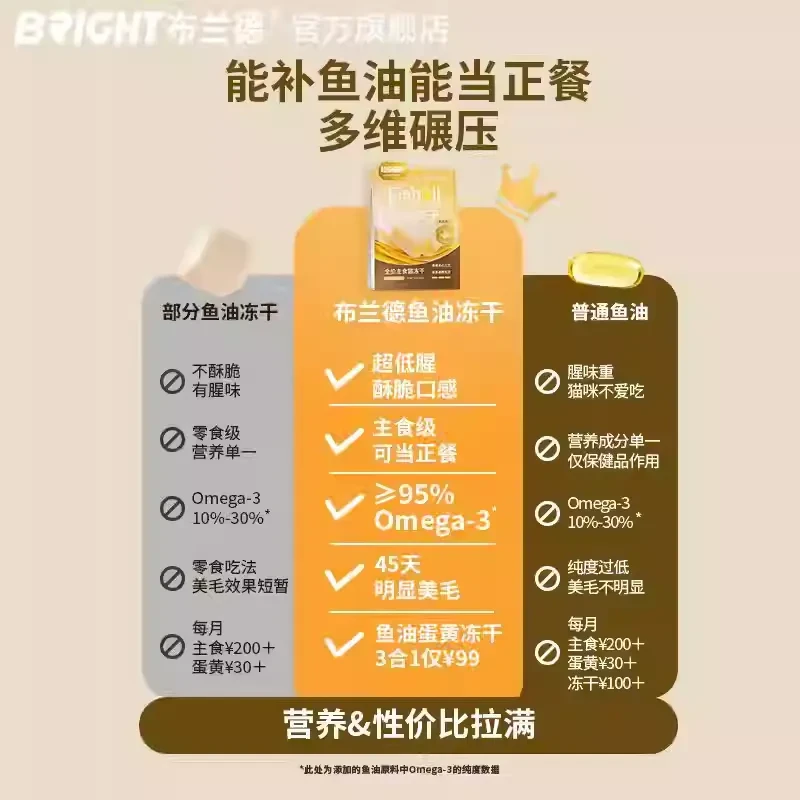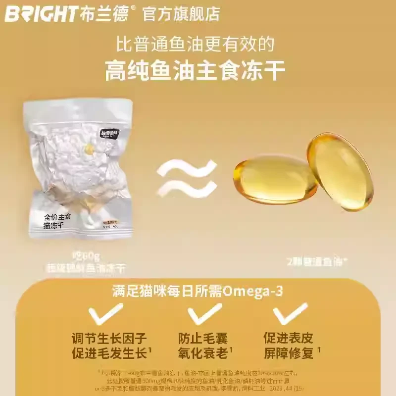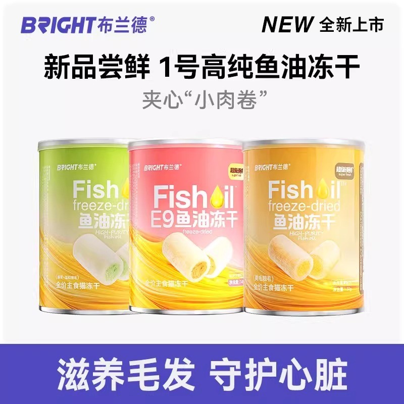Bright布兰德 鱼油主食级猫咪鸡肉冻干蛋黄夹心 5%纯度鱼油冻干 美毛亮毛 三款可选 一罐34g
