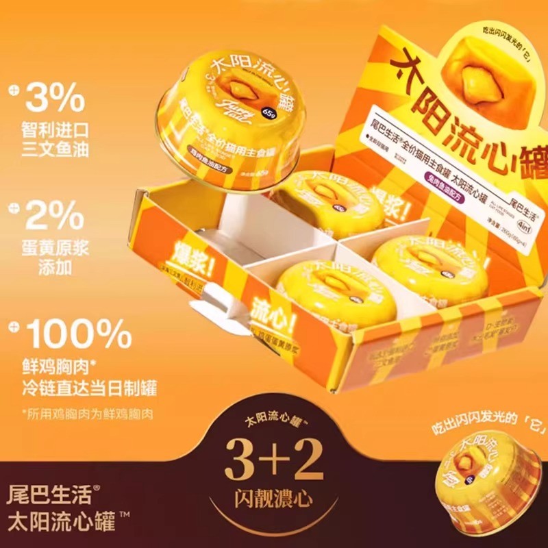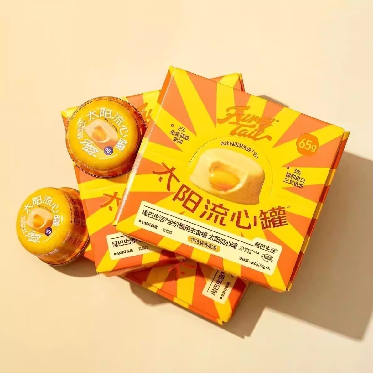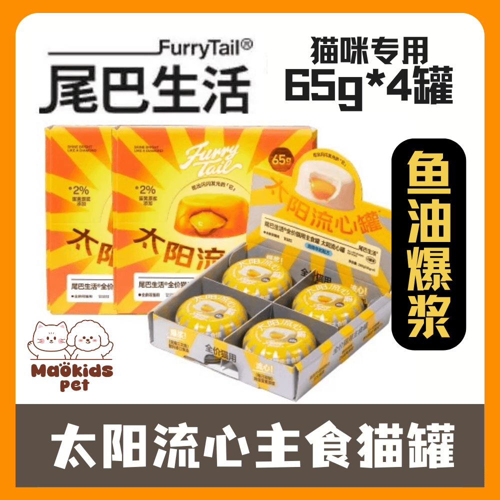 Furrytail尾巴生活 太阳流心罐 鱼油猫猫主食罐头 三口味可选 一盒4枚*65g