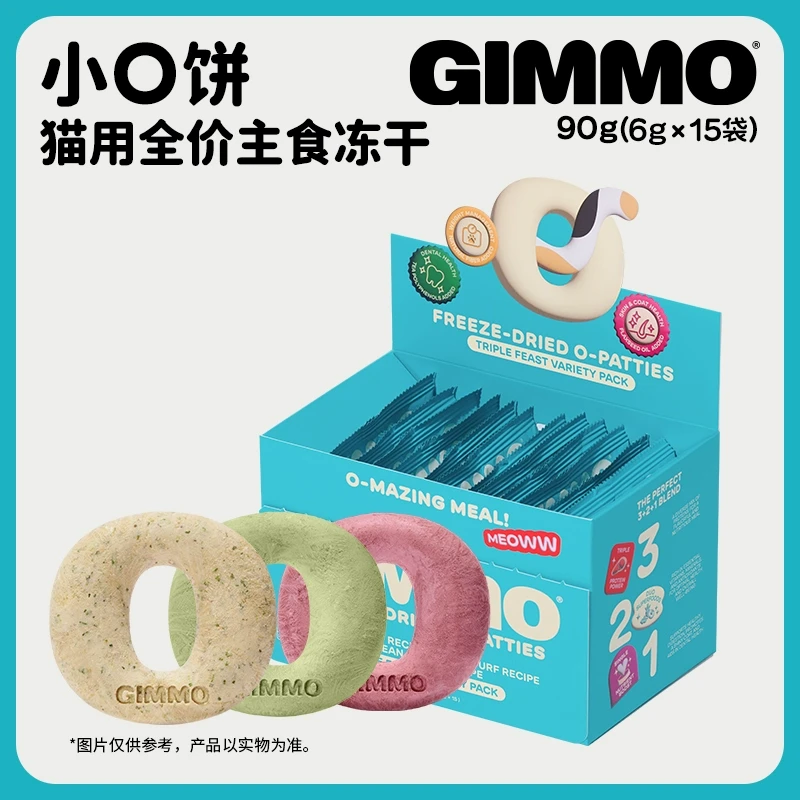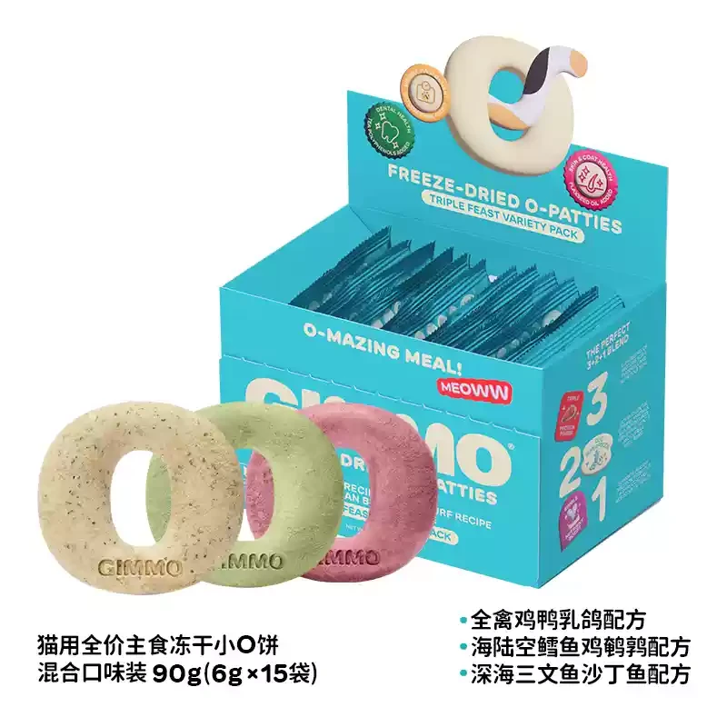GIMMO 小O饼 猫咪专用主食冻干 三口味可选 一袋7.5g 一盒12袋入