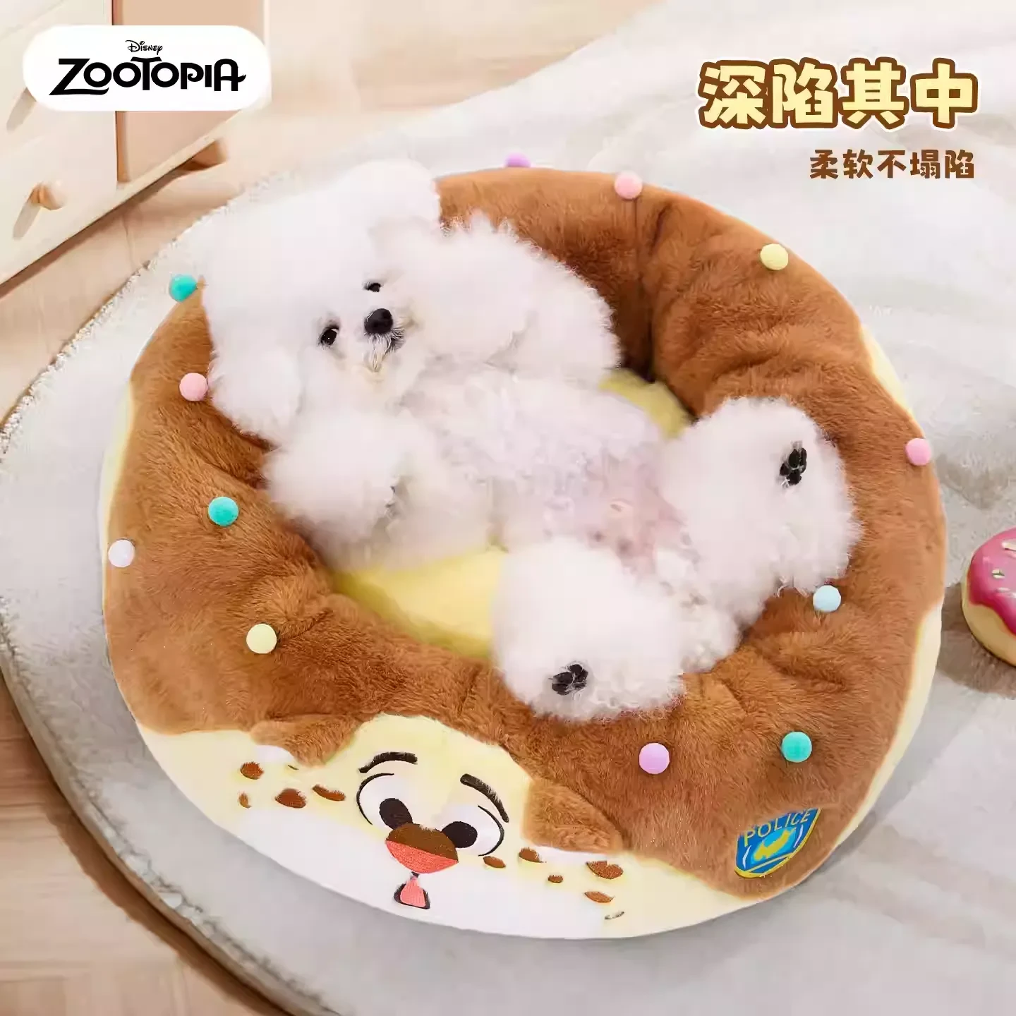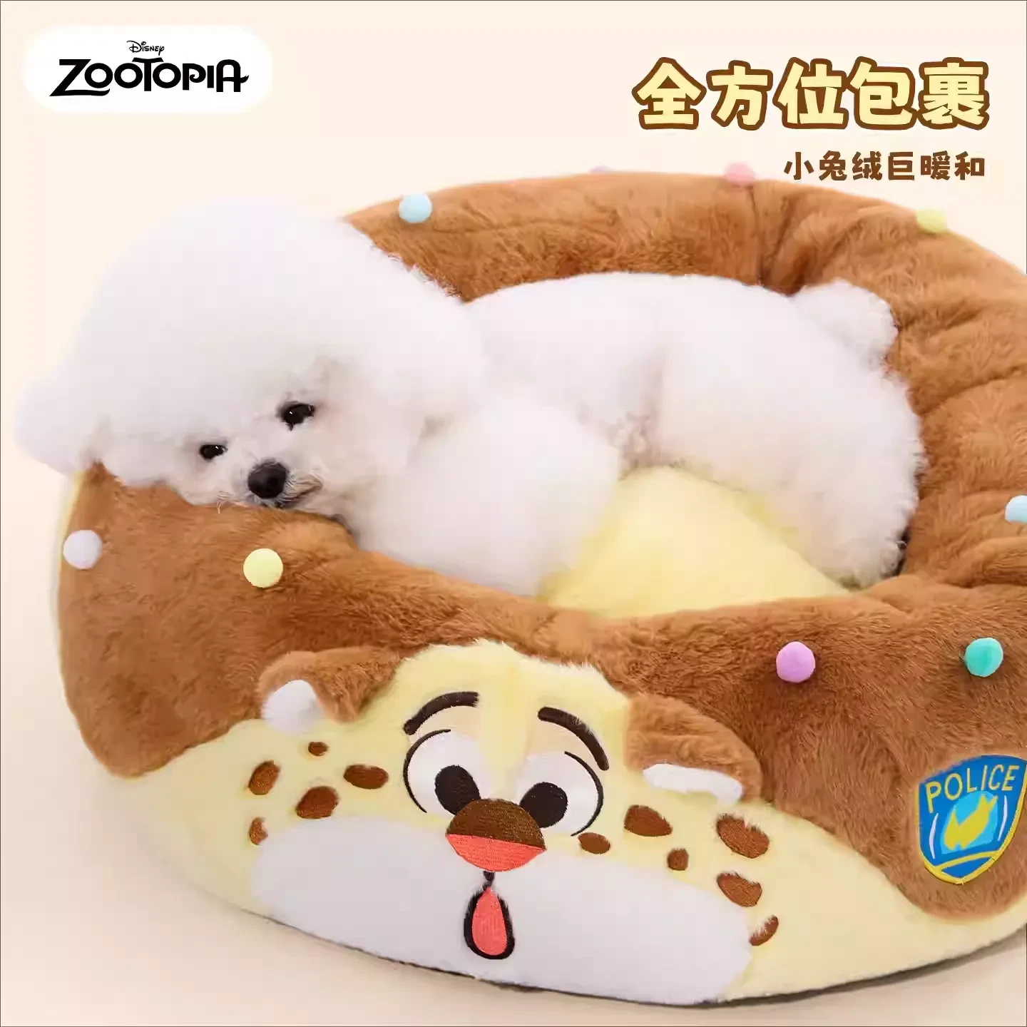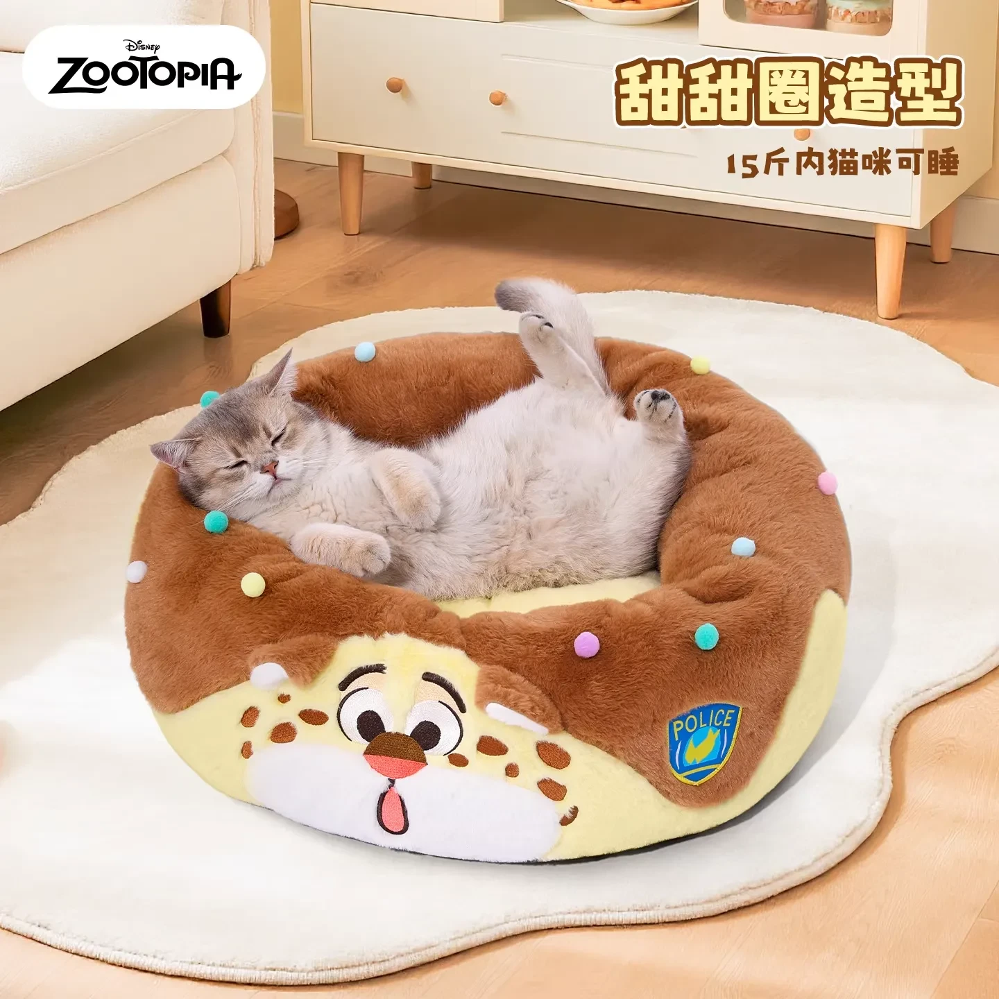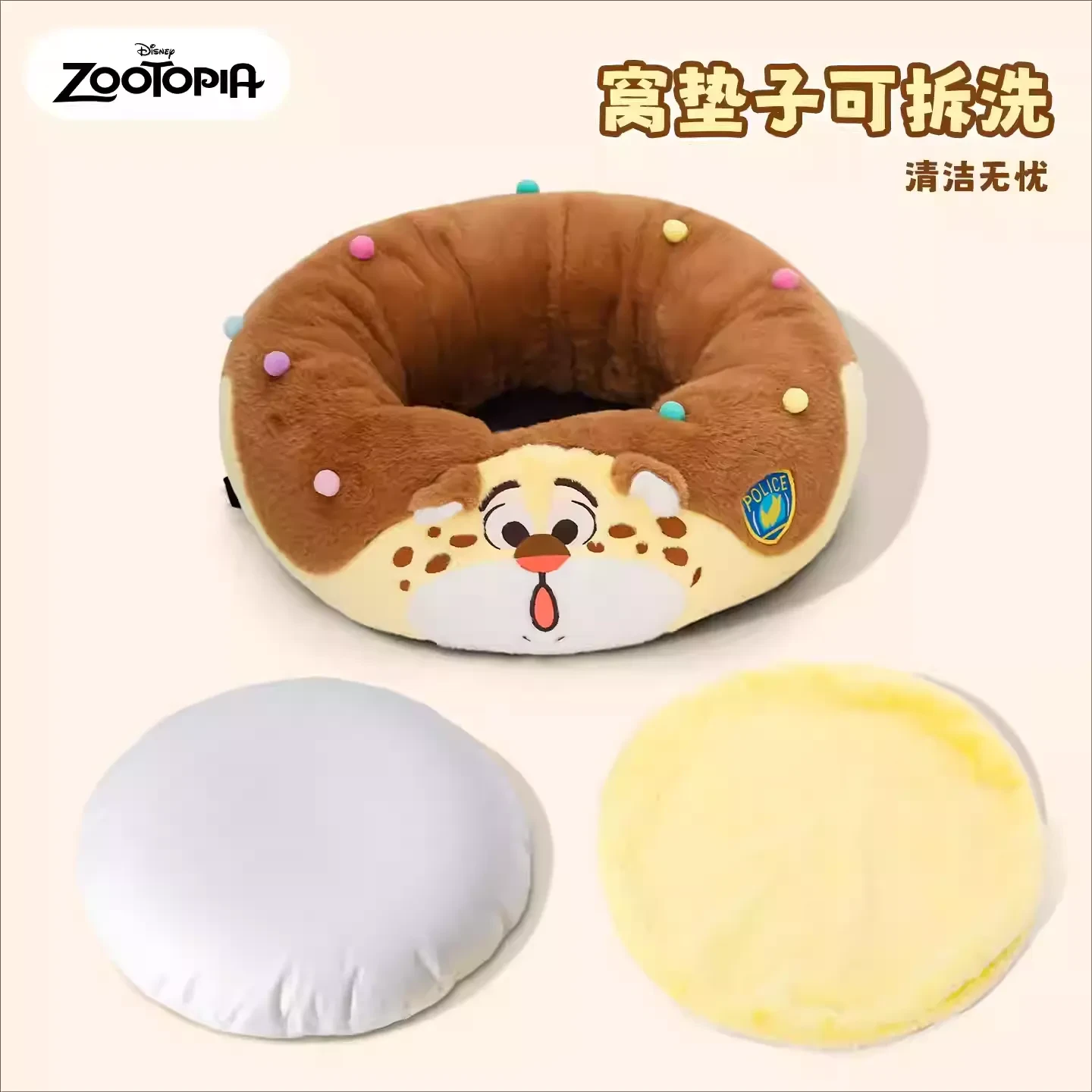 Disney迪士尼 疯狂动物城 豹警官甜甜圈宠物窝 冬季保暖可拆洗狗狗猫猫温暖垫子