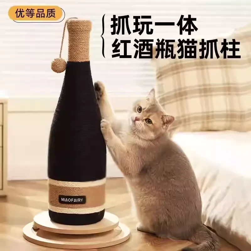 Miaofairy喵仙儿 红酒瓶剑麻猫抓柱 耐磨不掉屑 立式猫抓板 麻绳磨爪猫玩具 带转盘款