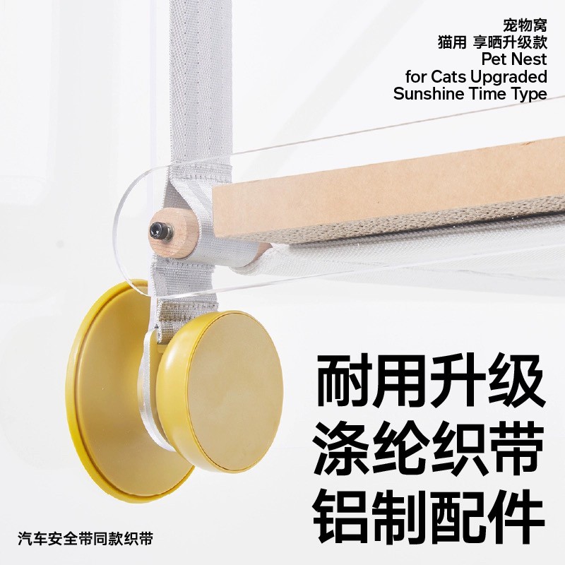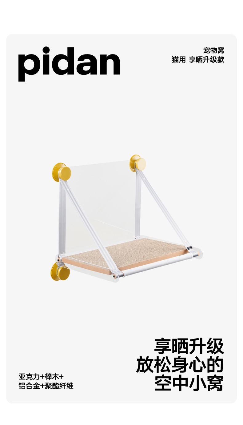 Pidan 猫吊床 实木榉木猫窝 壁挂式吸盘床边玻璃吊床