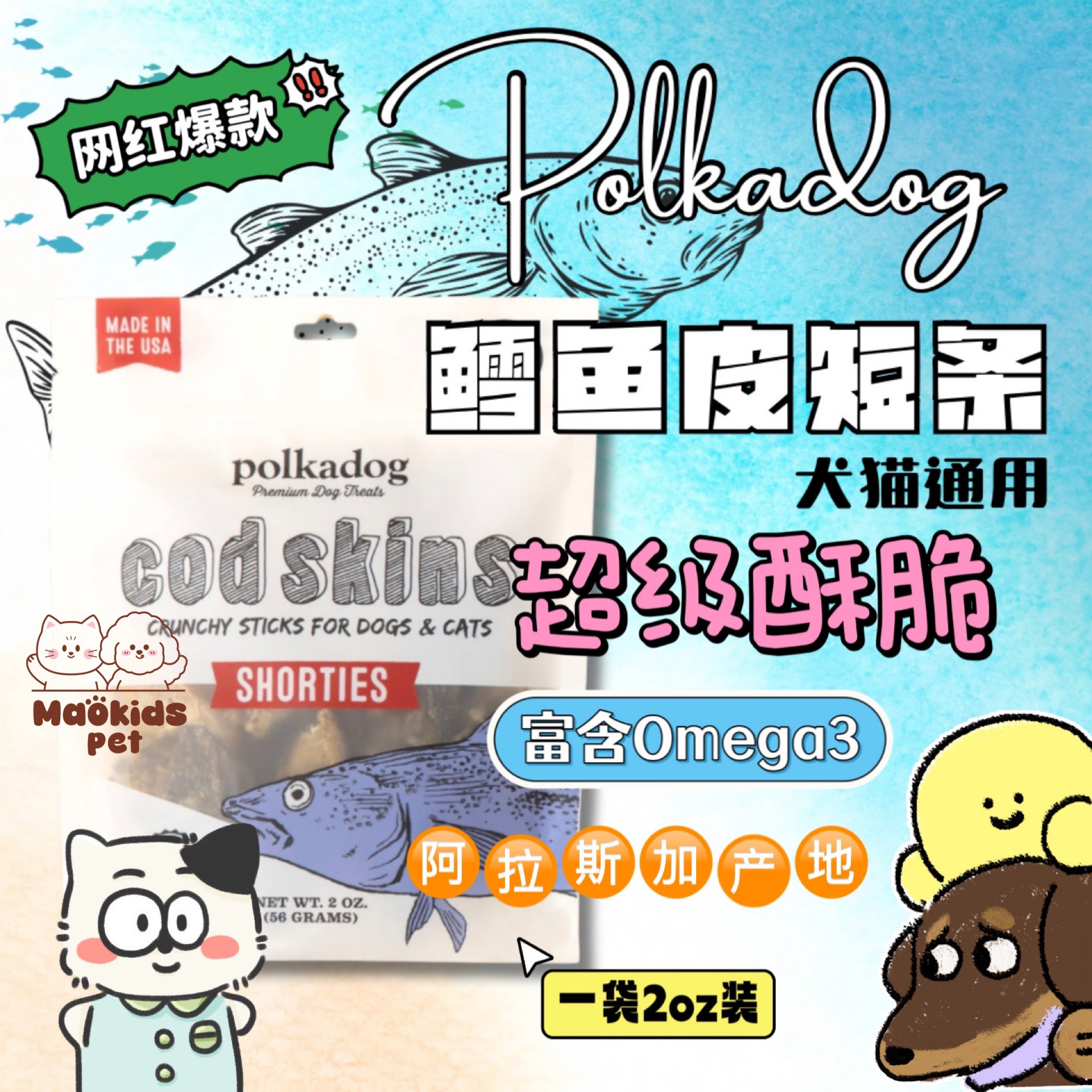 Polkadog 鳕鱼皮酥脆短条 犬猫通用 超高适口性 酥脆可口 一袋2oz入