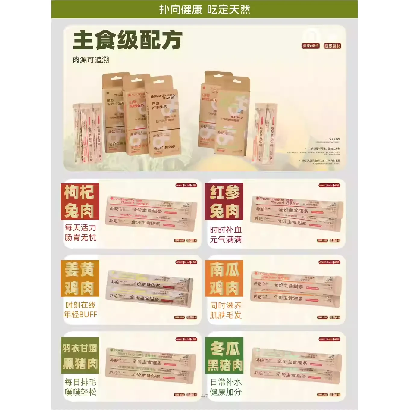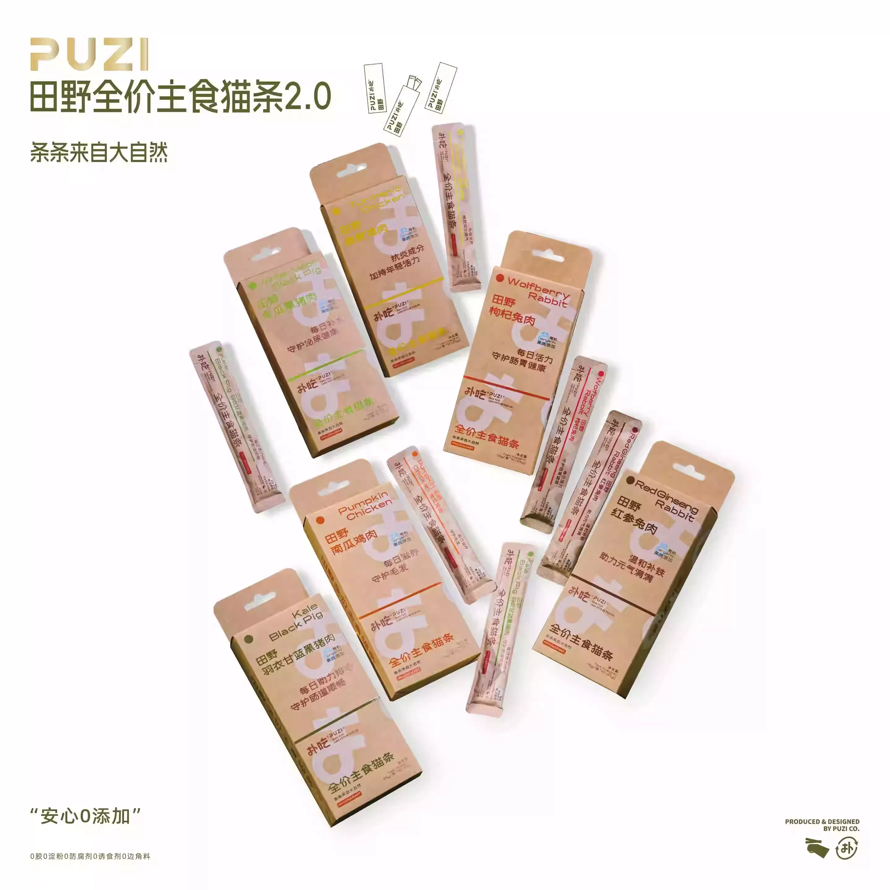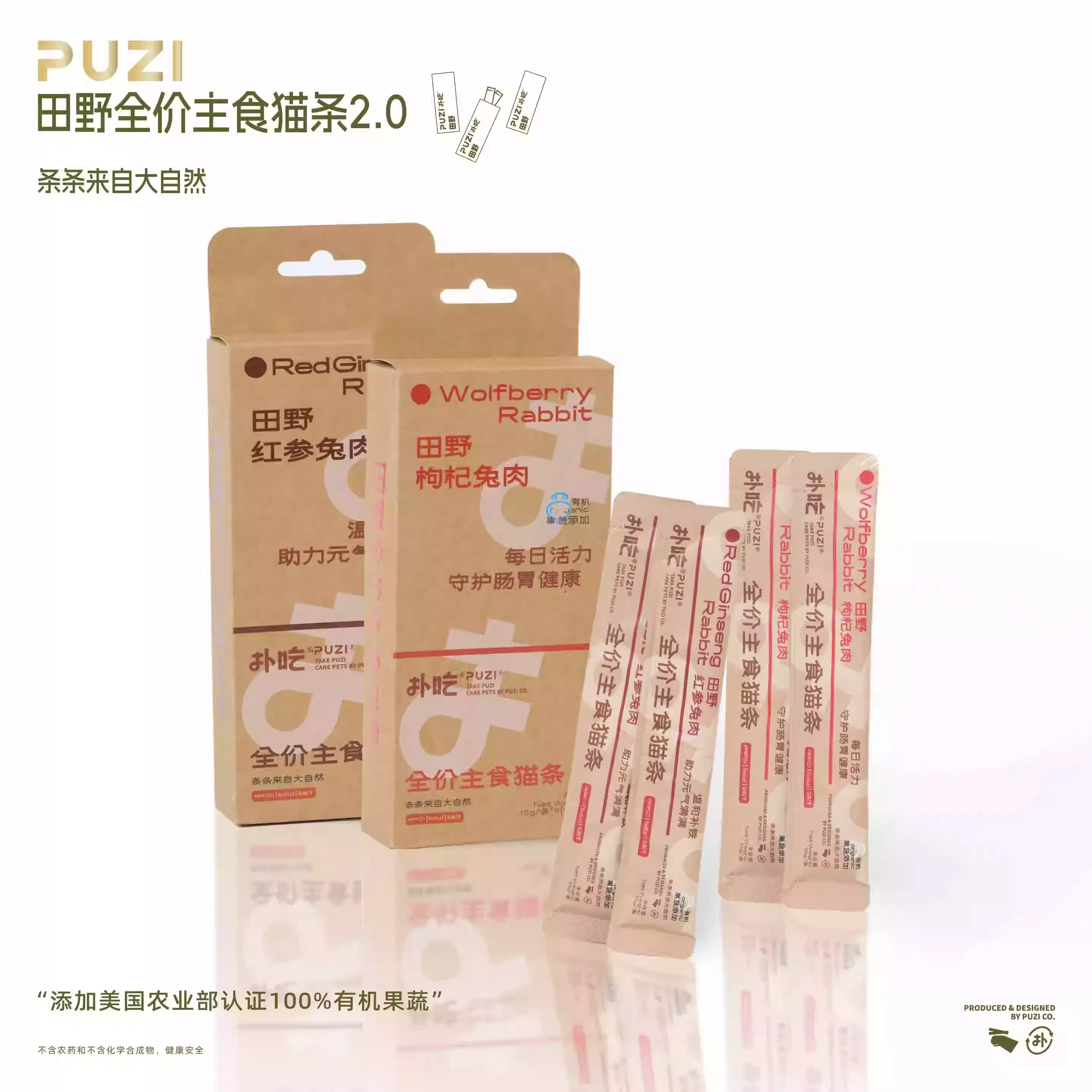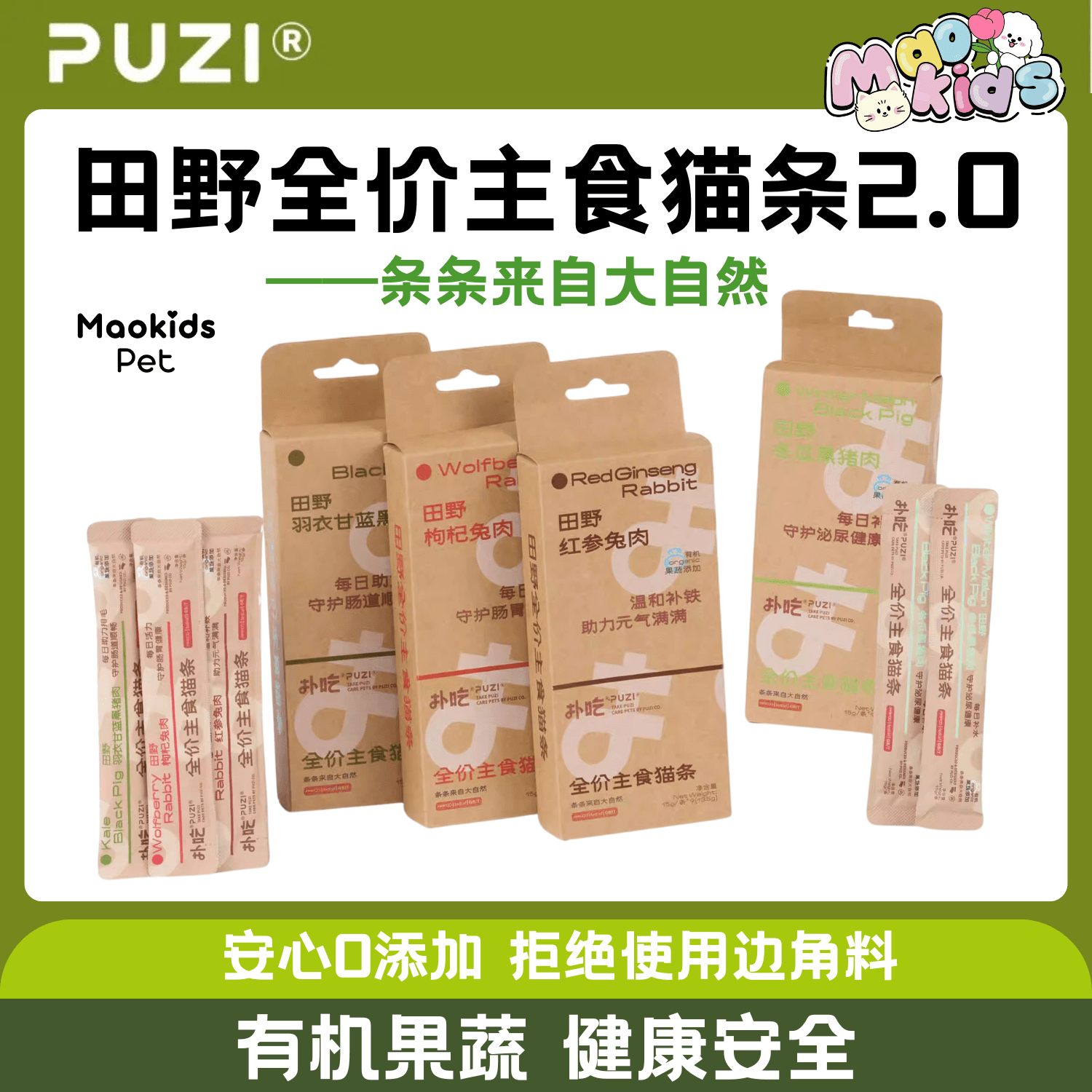 PUZI扑吃 猫咪专用 田野主食全价猫条升级版2.0 养生果蔬营养增肥 6味可选 15g*9支一盒