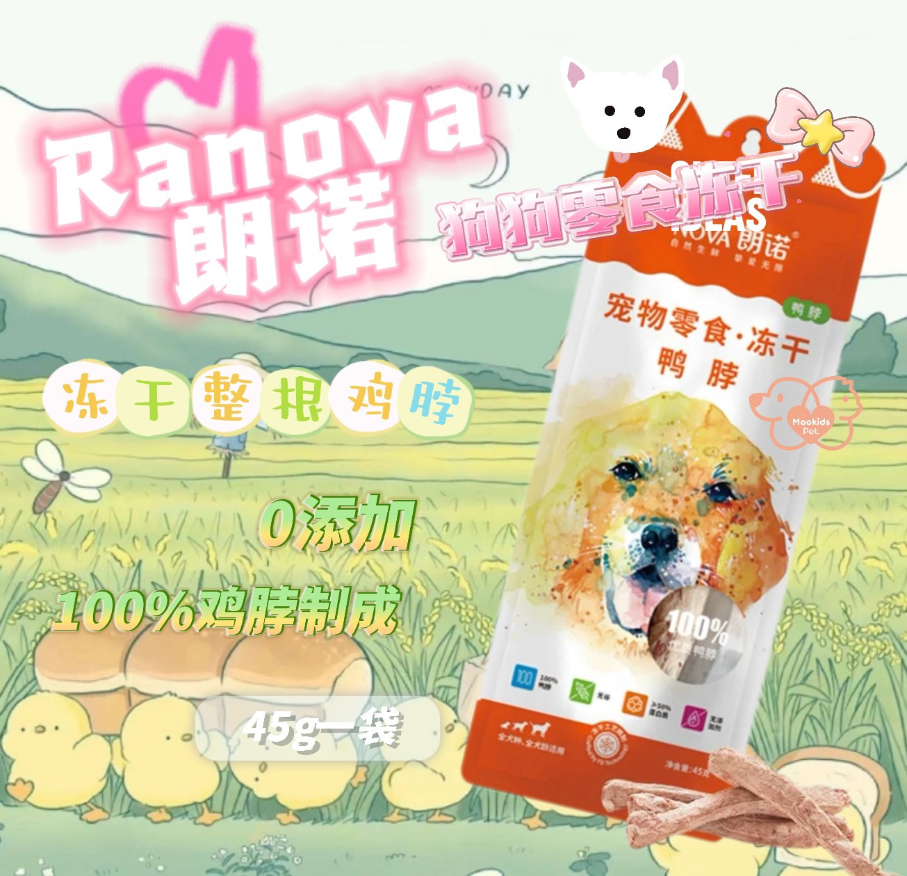 Ranova朗诺 100%整根鸭脖 磨牙必备清洁口腔 天然磨牙棒 狗狗专用 一袋1整根入 45g