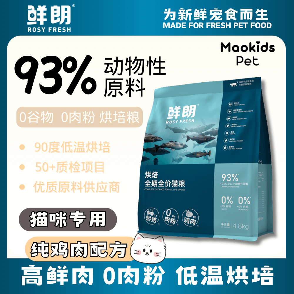 Rosy Fresh鲜朗 纯鸡肉配方低温烘培鲜肉全阶段猫粮 93%高含肉量 两种Size可选